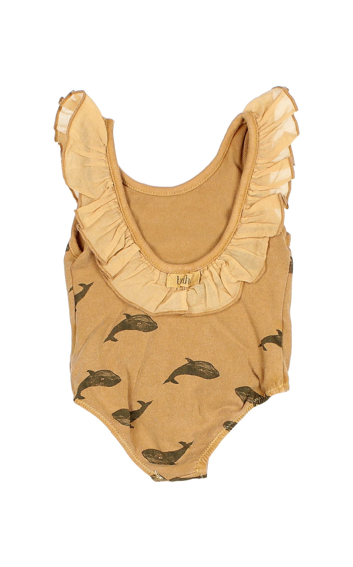 Maillot de plage imprimé baleine. On craque complètement pour cette collection de maillots made in Espagne et la possibilité de réaliser des assortis frère(s) et soeur(s) sublimes pour l’été! Ce modèle taille très petit, nous vous conseillons de prendre une taille au dessus de la taille habituelle! 100% Coton Bio. Moutarde. Búho