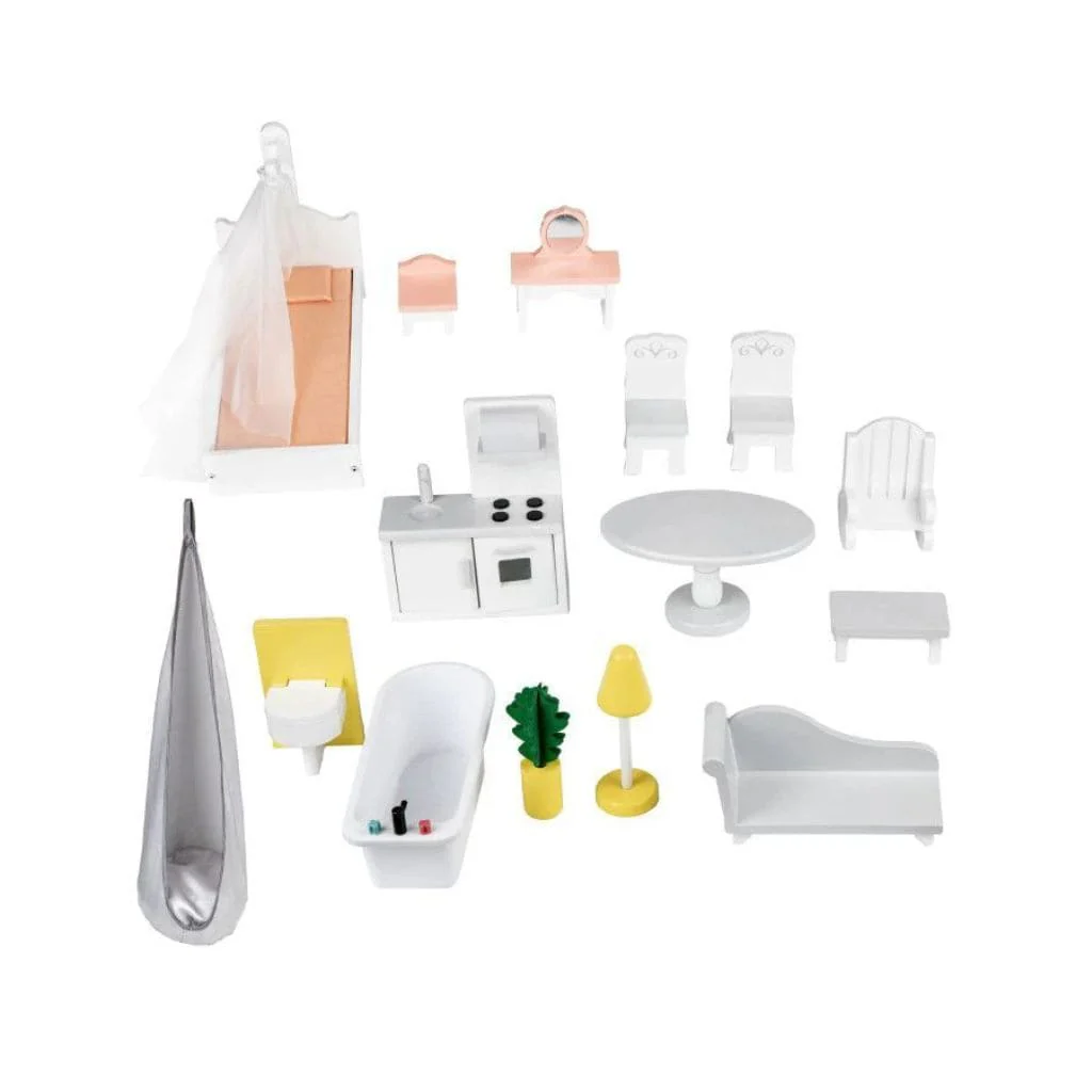 Les illustrations imprimées sur les murs ajoutent une touche réaliste, et les 15 meubles en bois inclus permettent une personnalisation créative. Une maison pensée pour développer l’autonomie, l’imagination et les compétences sociales.