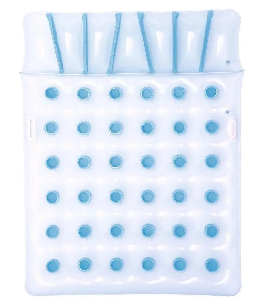 Confortable et disponible en couleur bleu et transparent, son design tendance ajoutera du peps à votre décoration de jardin. Idéal pour récupérer après une soirée arrosée ou un repas gourmand en famille, ce matelas gonflable double est conçu en vinyle waterproof renforcé, pour une durabilité maximale.