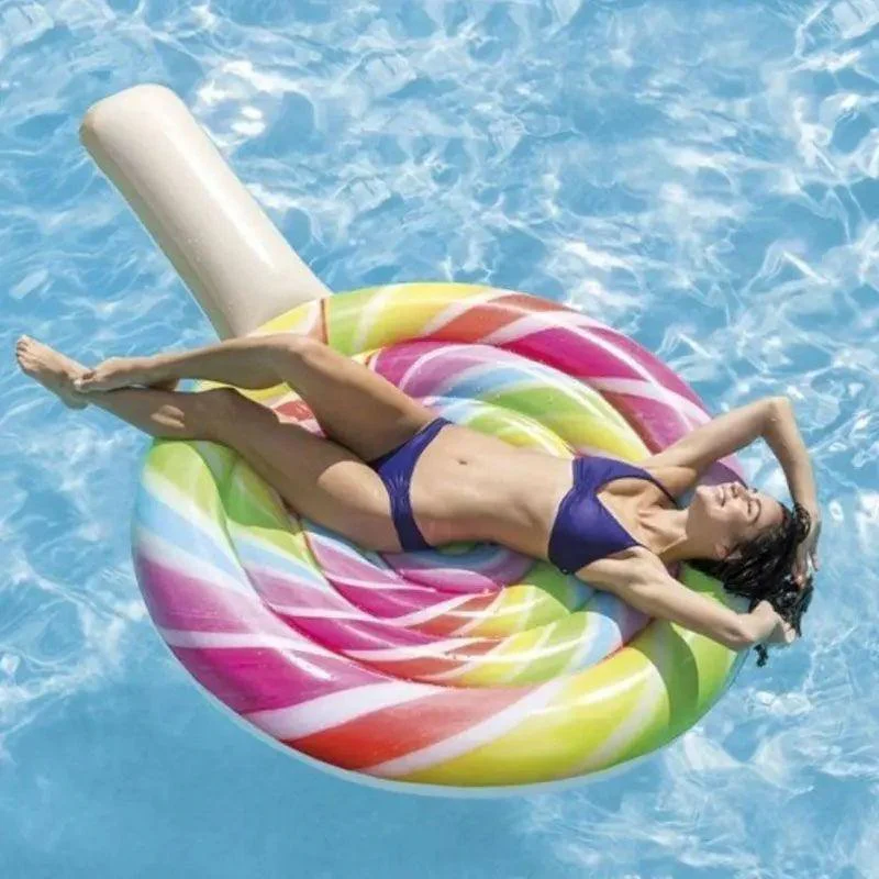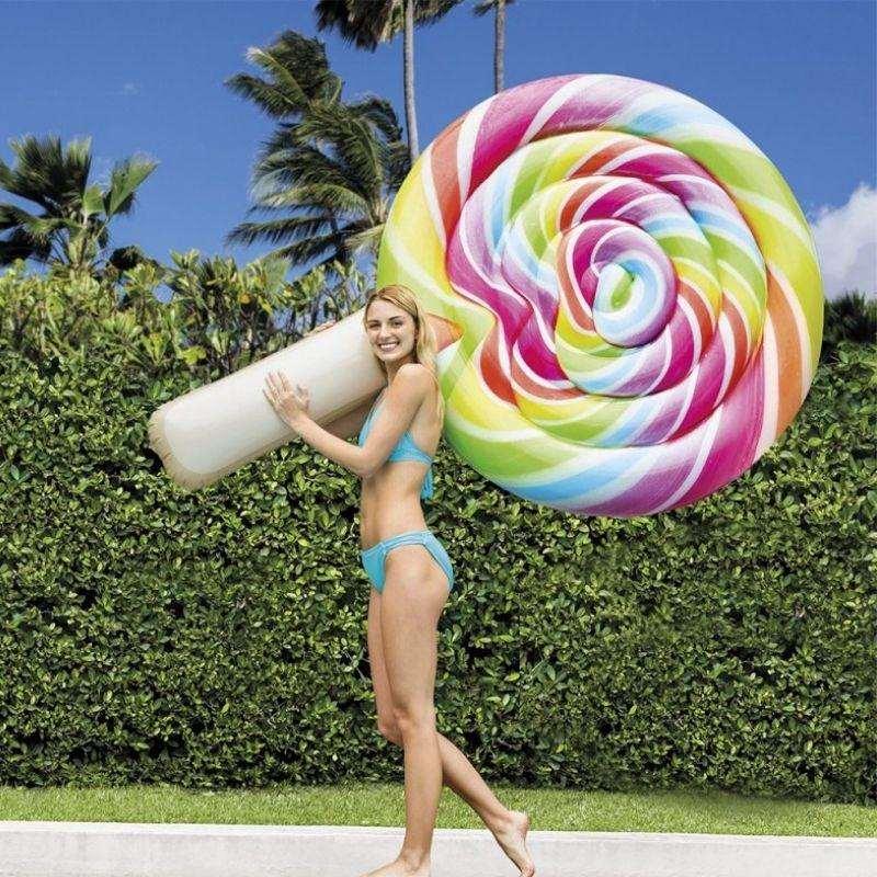 Le matelas gonflable sucette peut être utilisée comme jeux de piscine, accessoire d’été ou plus largement comme mobilier de jardin. Associez-là à une bouée flamant rose, bouée géante licorne ou un matelas cornet de glace et le tour est joué, votre extérieur est décoré pour l’été.