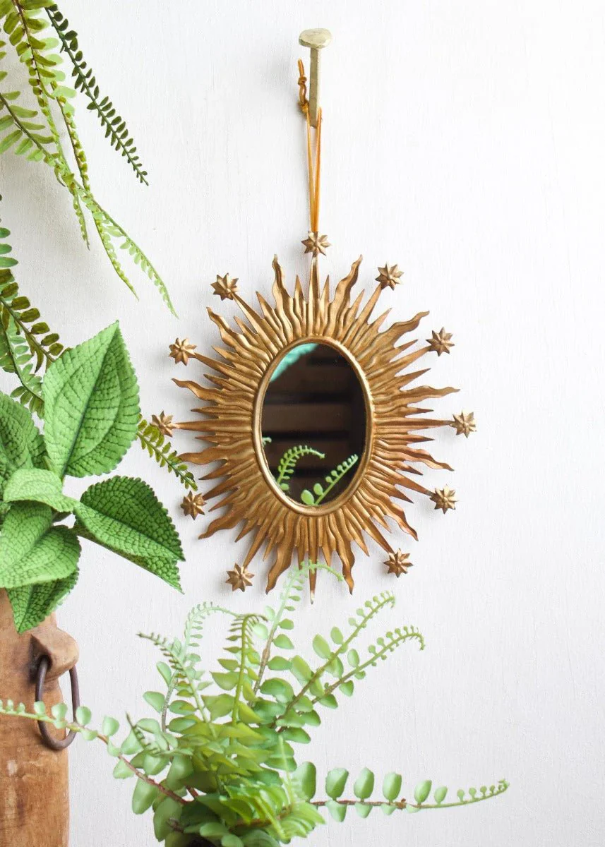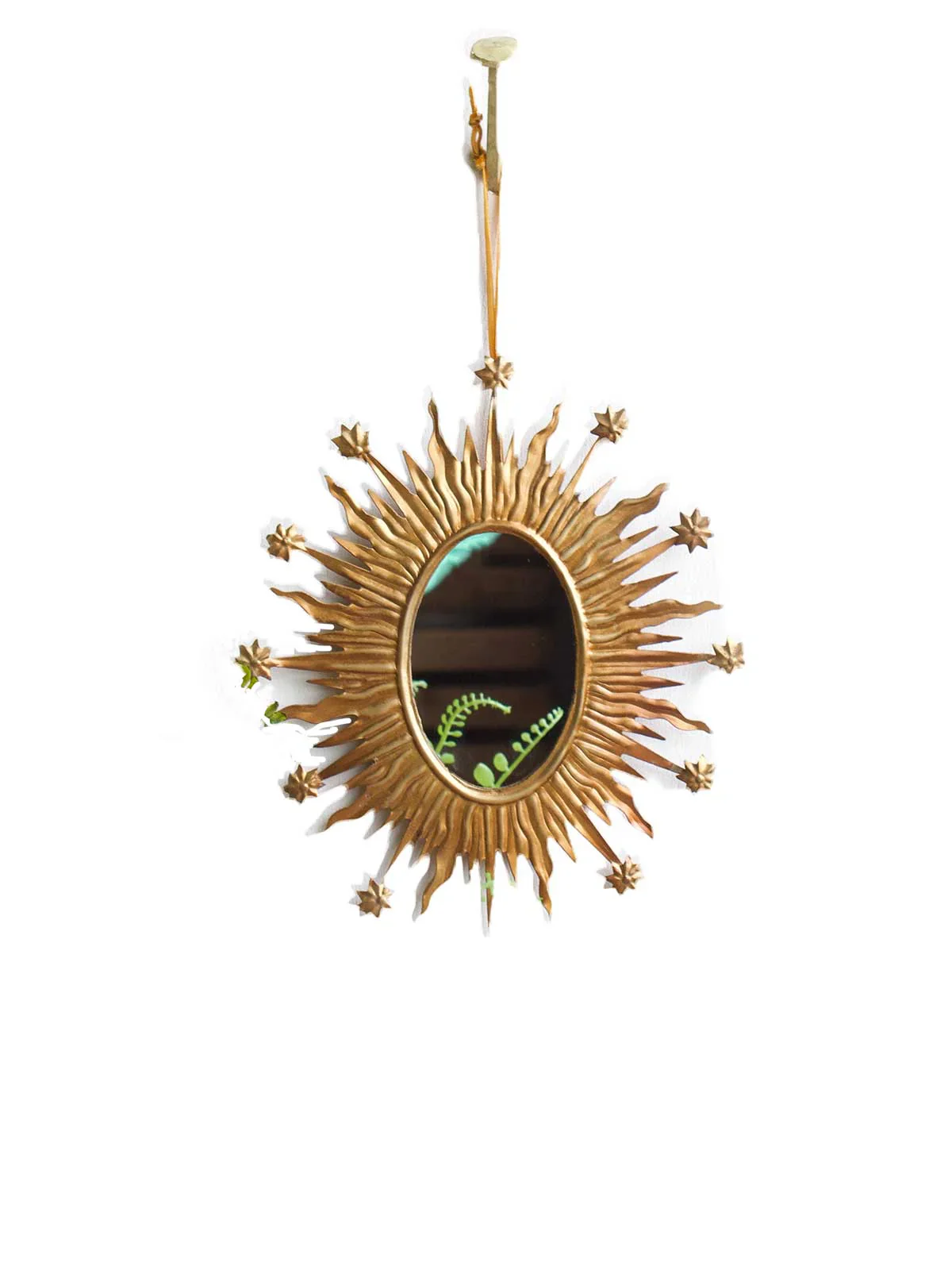 Ce magnifique miroir soleil apporte lumière et chaleur à n’importe quelle pièce. Inspiré du style traditionnel des ex-voto, il est réalisé à la main avec des rayons dorés ornés d’étoiles qui semblent danser autour du miroir. Dans de nombreuses cultures, le soleil symbolise la vie, l’énergie et la protection, ce qui rend ce miroir non seulement décoratif, mais aussi symbolique. Accrochez-le seul pour attirer le regard, ou associez-le à d’autres petits miroirs et ornements pour une composition murale originale. Où qu’il brille, il apporte instantanément une touche d’originalité.