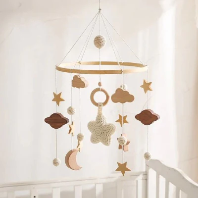 Mobile bébé artisanal en bois et crochet pour un sommeil paisible