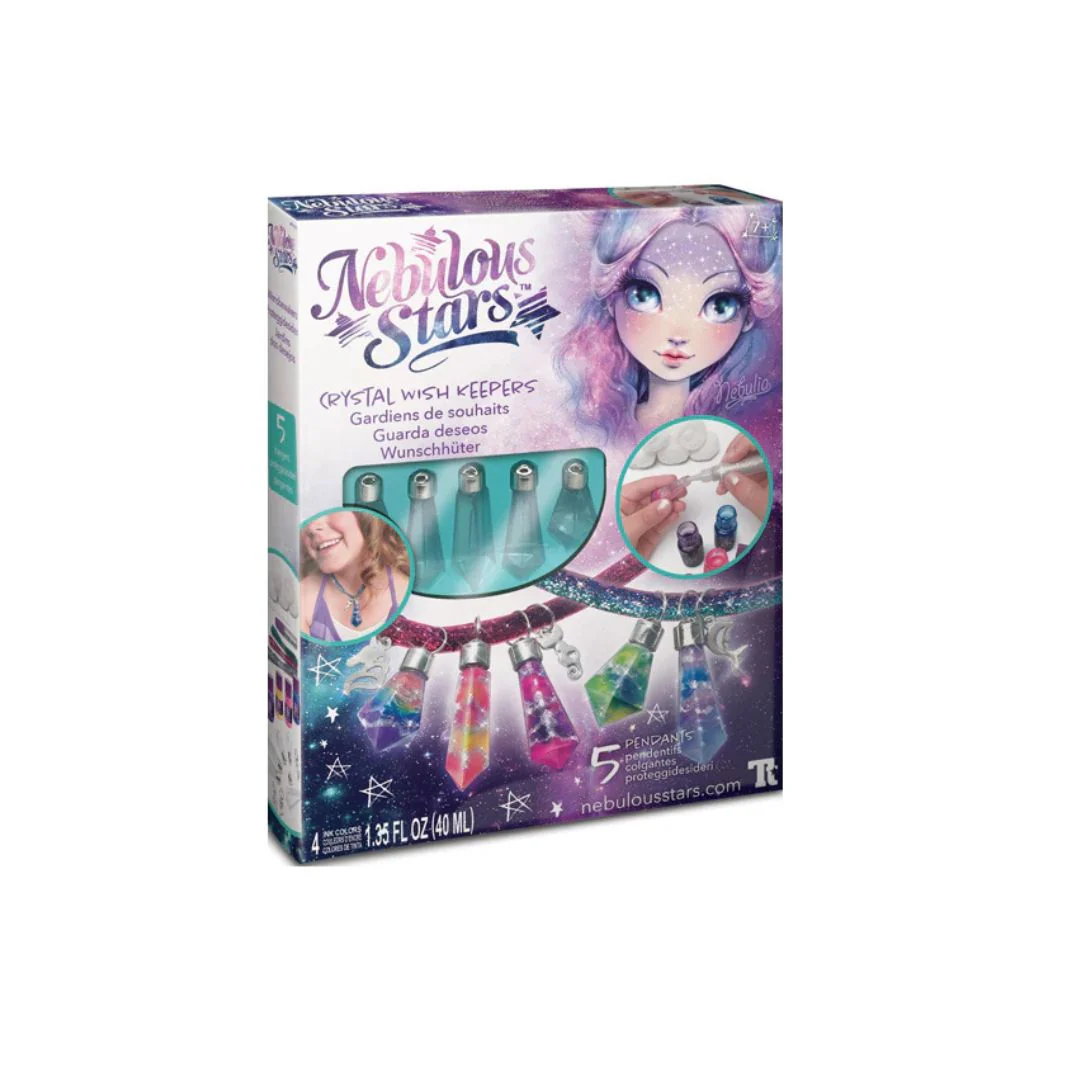 Crée un bijou mystique rempli de ton propre souhait, capturé dans un pendentif en forme de cristal. Avec une touche de magie, transforme cette minuscule galaxie colorée en un porte-bonheur que tu peux porter autour du cou ou accrocher en porte-clés. Fais un vœu et garde-le près de toi !