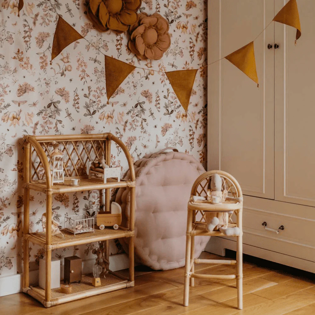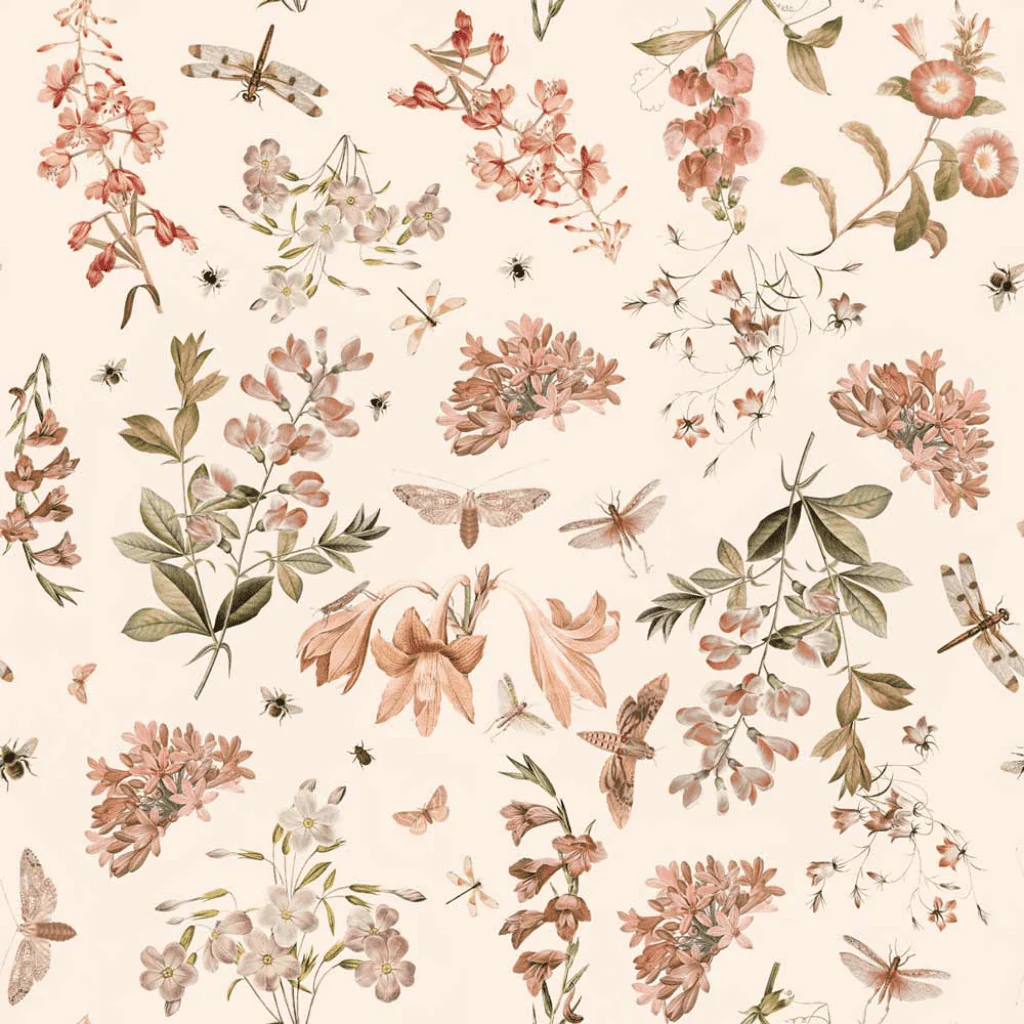 Un papier peint ludique aux merveilleuses couleurs chaudes qui illuminera chaque pièce. Il dégage une atmosphère estivale pleine de joie et de mouvement – on pourrait presque sentir le parfum des fleurs…