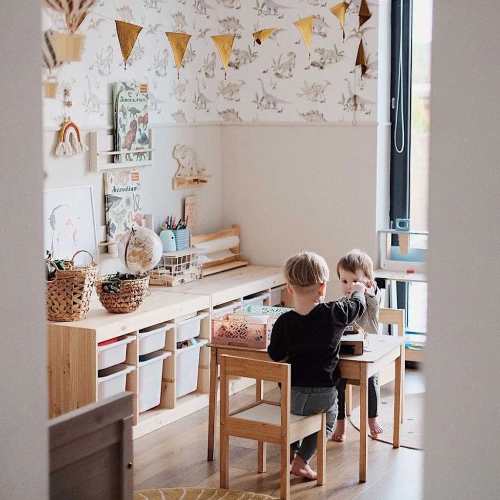 Avec ses six dinosaures adorables et son motif équilibré, il stimule l’imagination sans surcharger l’espace pour un décor harmonieux et chaleureux.