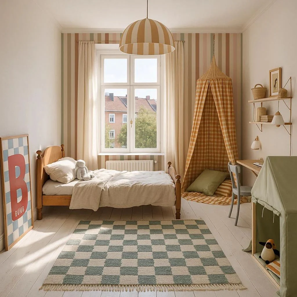 Avec ses rayures fines de 5 cm, il est spécialement conçu pour agrandir visuellement les petits espaces, créant une atmosphère aérée et lumineuse. ✨ C’est le choix parfait pour une décoration murale raffinée et moderne.