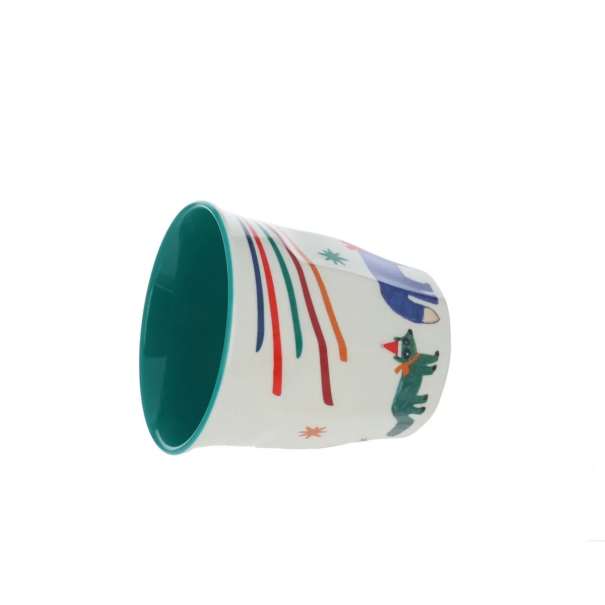 Sous un ciel étoilé, le renard et le raton laveur se sont donné rendez-vous autour du sapin de Noël ! Ce petit verre en mélamine mêle poésie, couleurs et bonne humeur à chaque gorgée. Solide et facile à tenir, il accompagne les repas des enfants avec une touche de fantaisie et d’émerveillement.