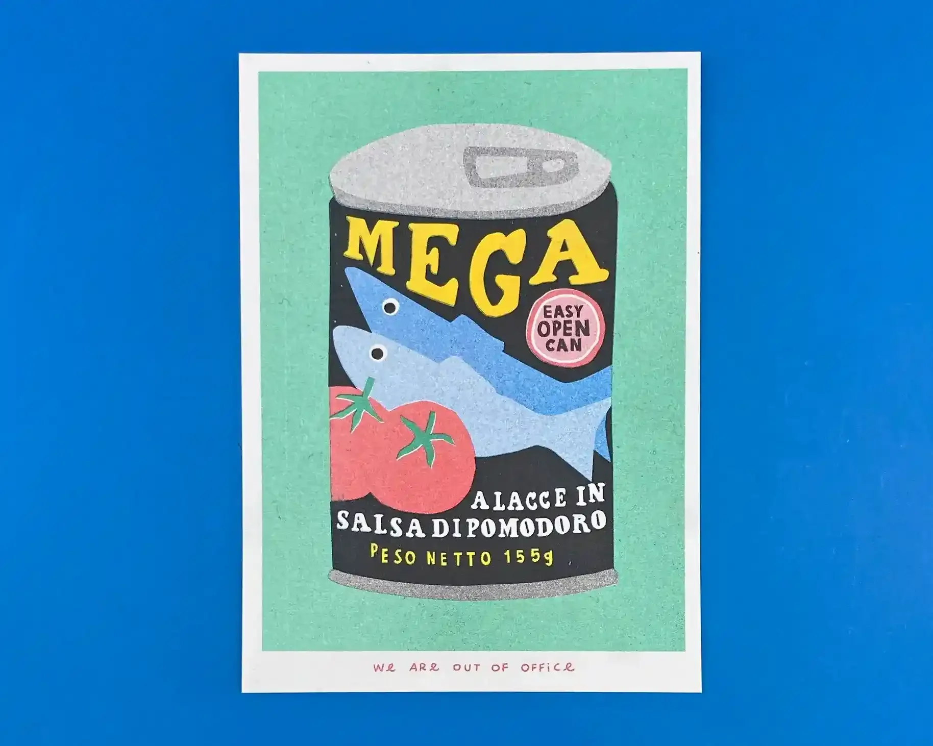 Petite Affiche Risographie – Méga Sardines – We Are Out Of Office