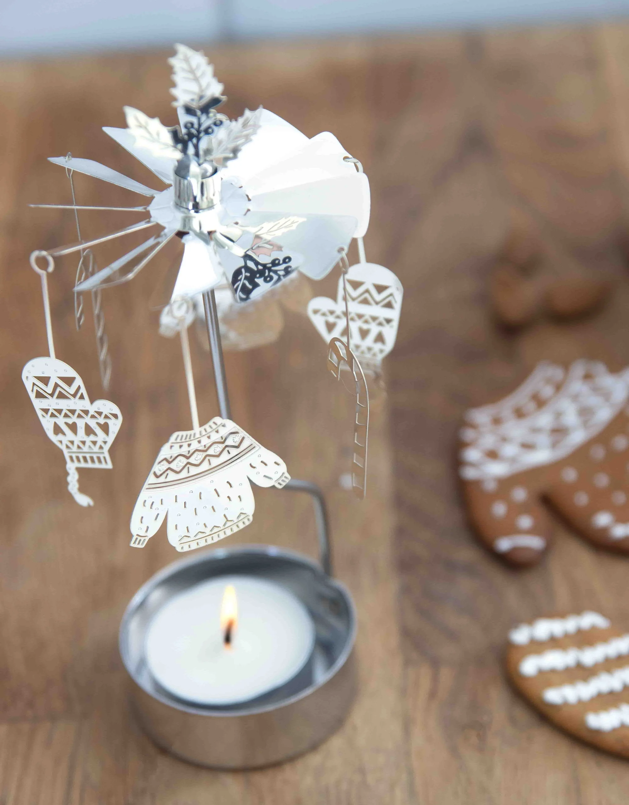Photophore Carrousel Rotatif Argent – Douceur d’Hiver