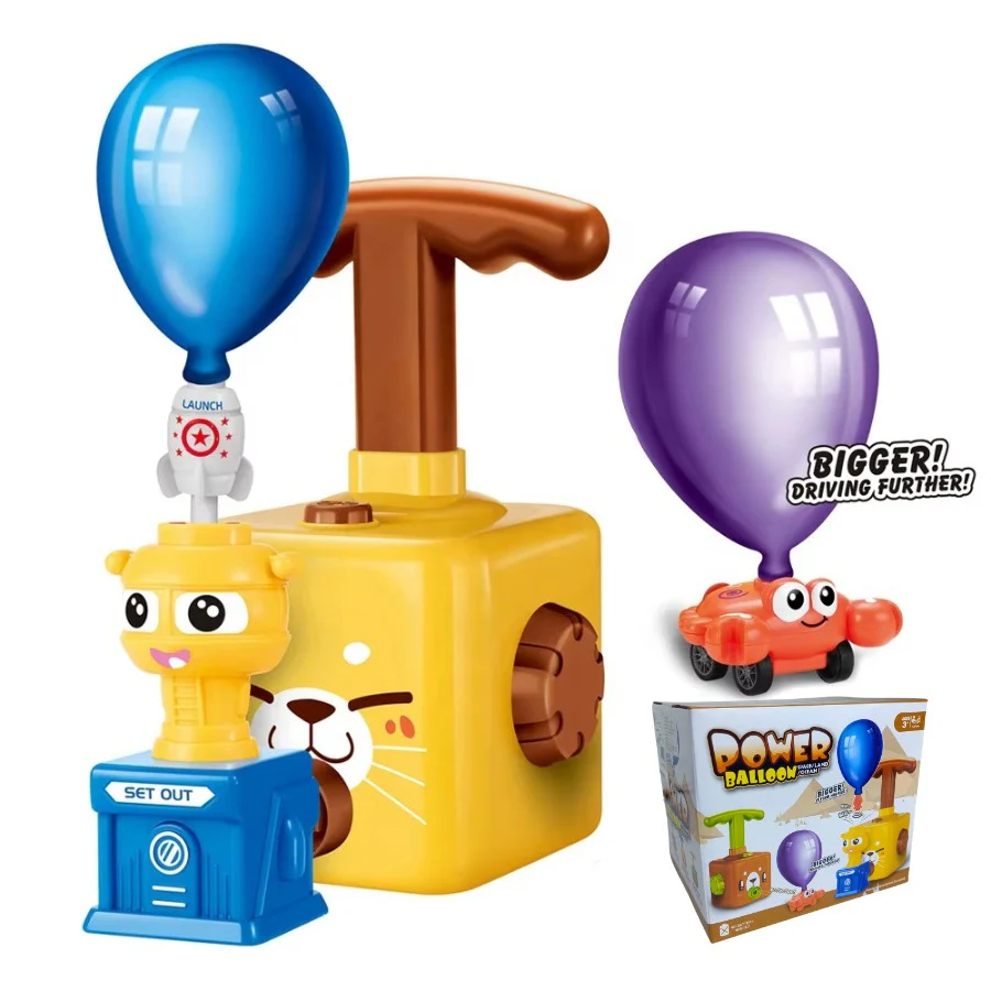 Découvrez le Jeu Éducatif « Power Balloon » (Ballon Puissance), un jouet fantastique pour apprendre les bases de l’aérodynamisme et des lois de la physique par le jeu ! Le concept est simple : utilisez la pompe manuelle pour gonfler un ballon, puis relâchez l’air pour propulser les petits véhicules (voitures, etc.).