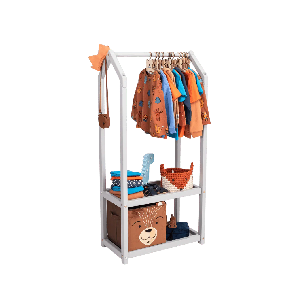 🧸 Portant à vêtements forme maison avec rangement — esprit Montessori