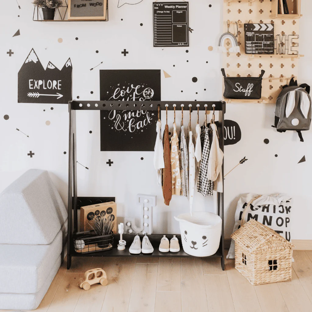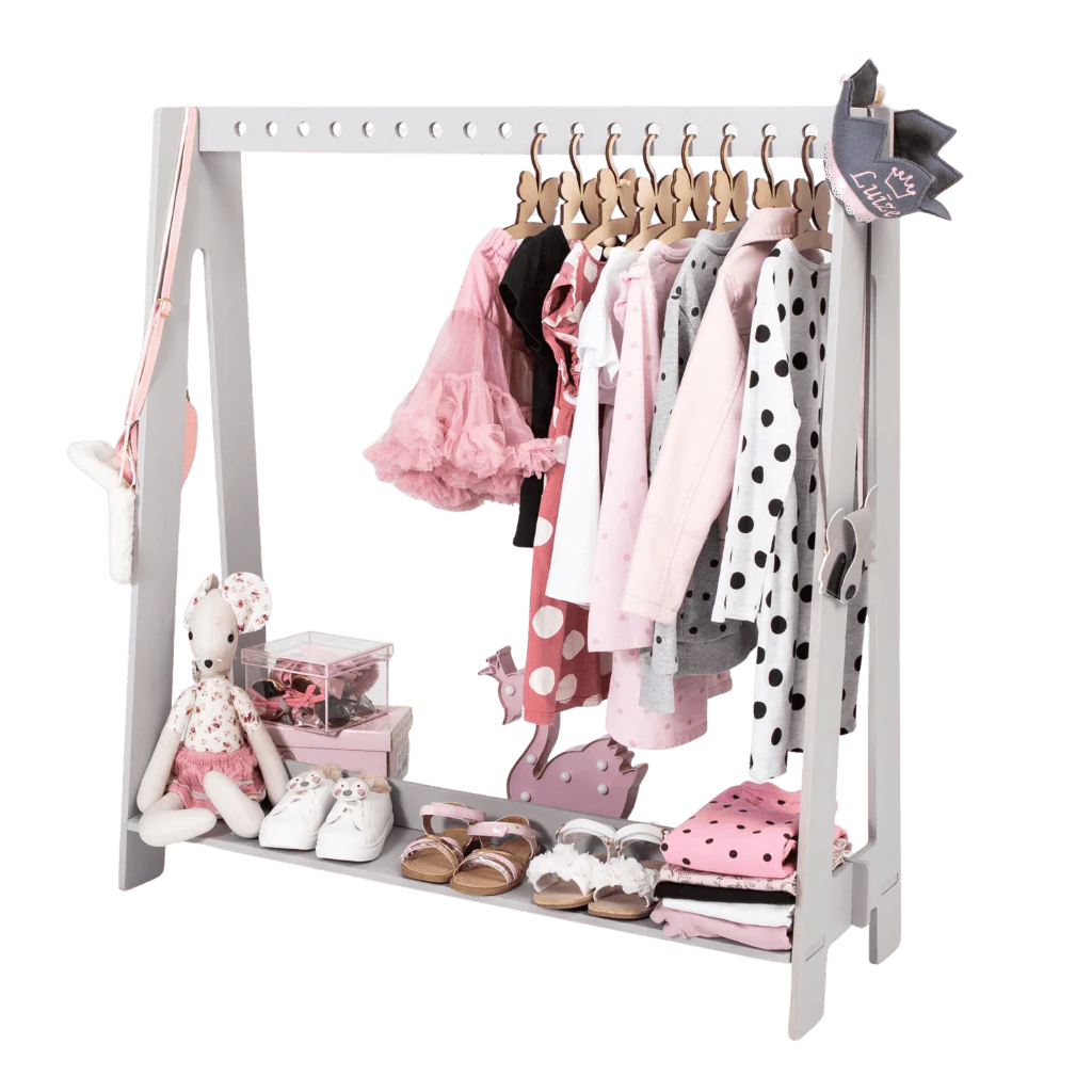 Idéal pour ranger ou exposer les adorables tenues de votre enfant, ce portant combine élégance et praticité.