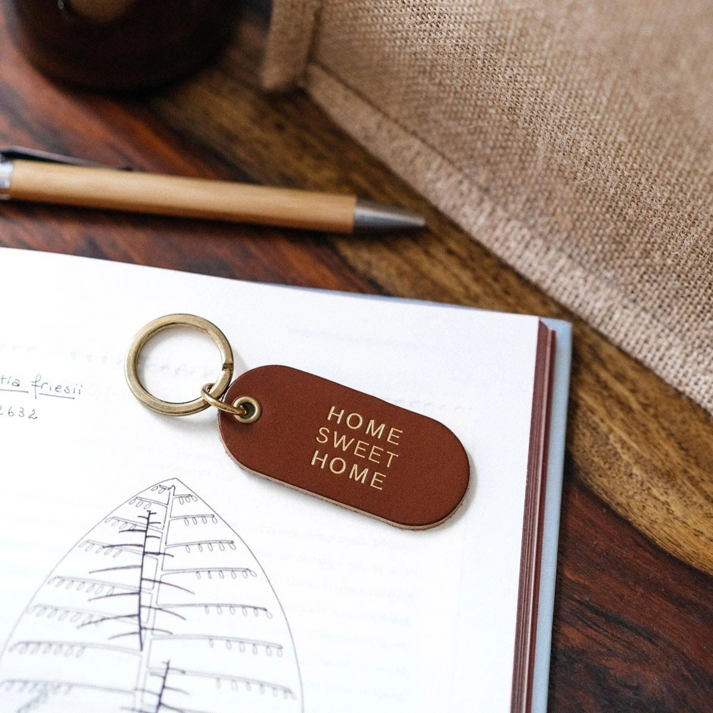 Un porte-clé en cuir à message gravé, parfait pour faire passer un petit mot tendre ou drôle.