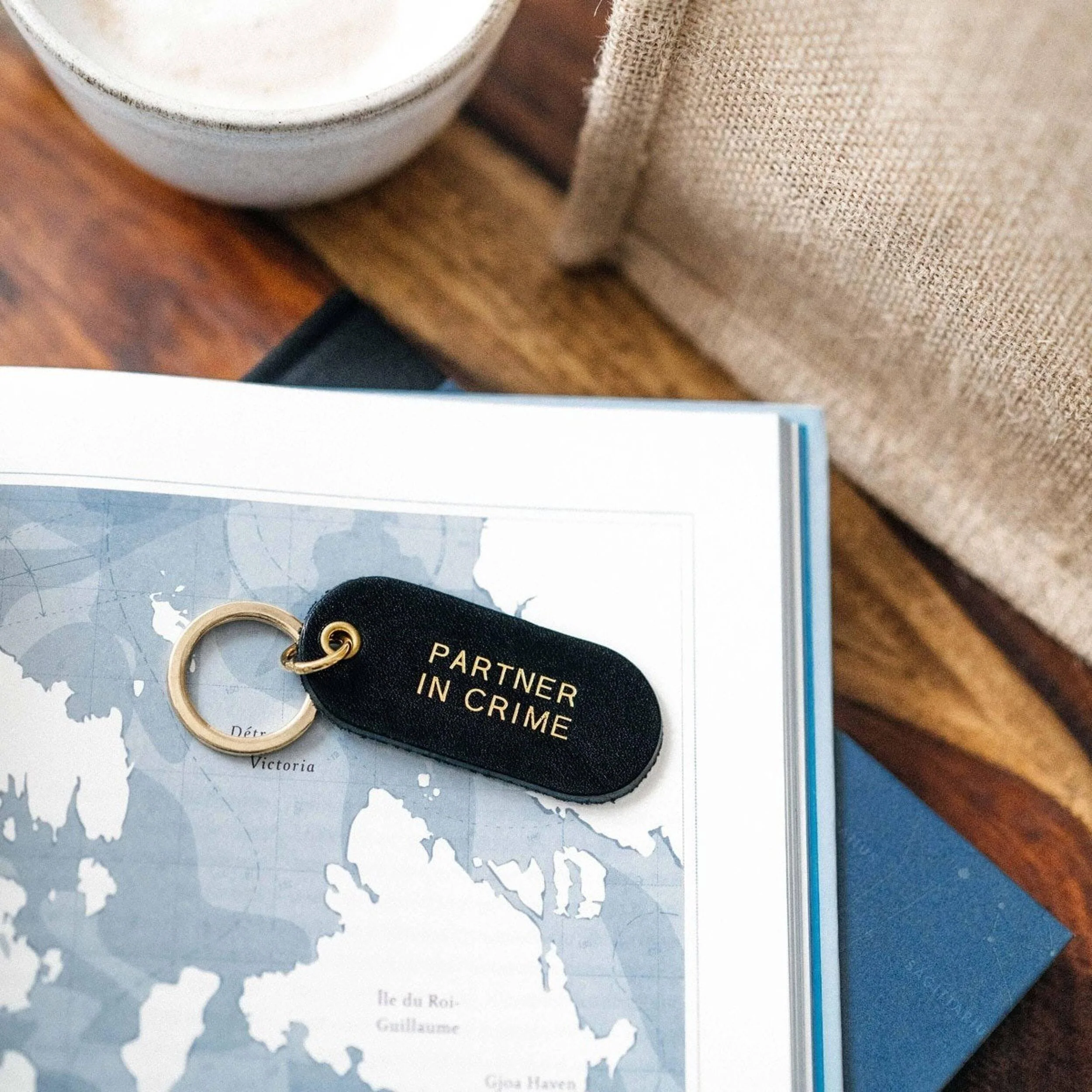 Un porte-clé en cuir à message gravé, parfait pour faire passer un petit mot tendre ou drôle.