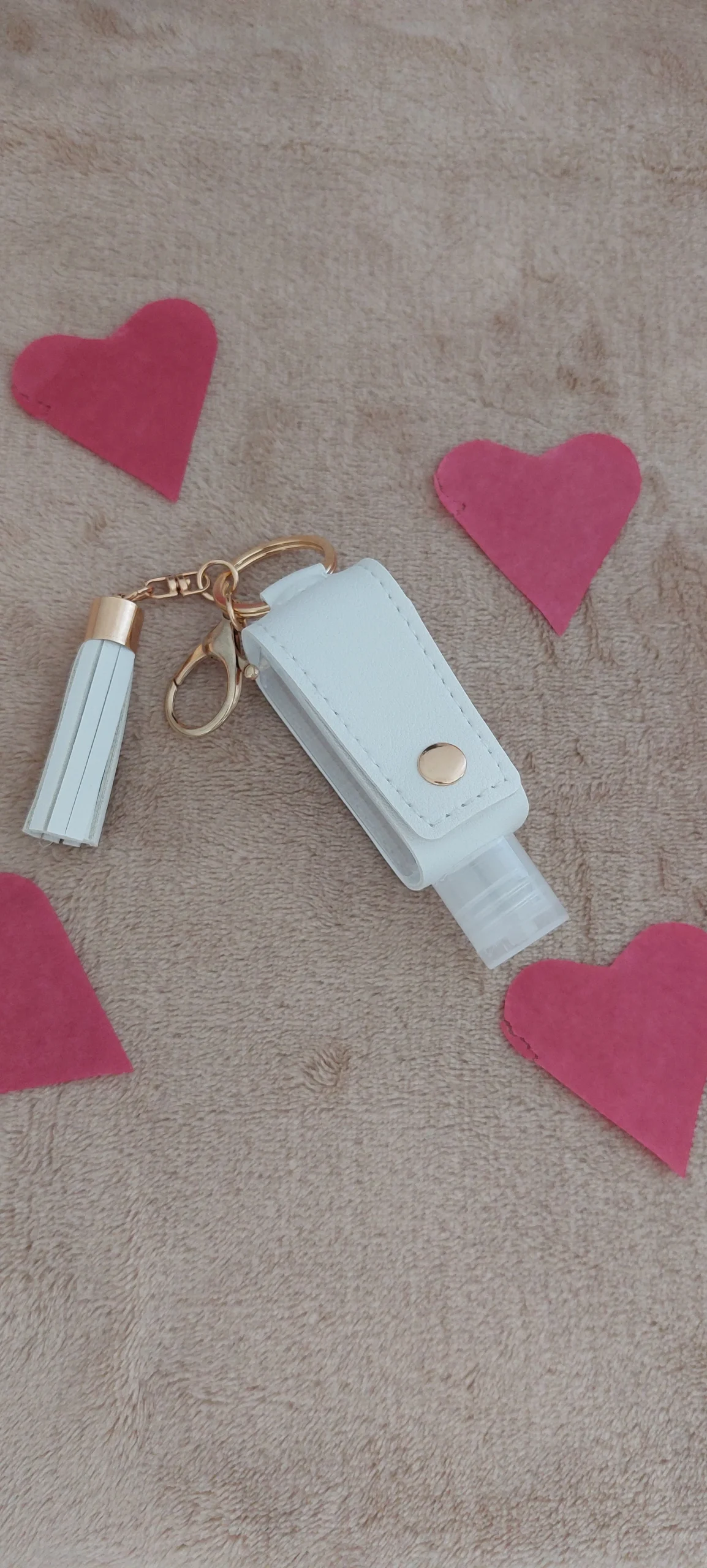 Ce porte-clé imitation cuir blanc, pratique et élégant, est le cadeau idéal pour toutes les femmes. Il est équipé d’une petite bouteille de gel désinfectant (gel non fourni), permettant à votre grand-mère de garder ses mains propres en toute circonstance. Son design raffiné et sa couleur douce en font un accessoire à la fois utile […]