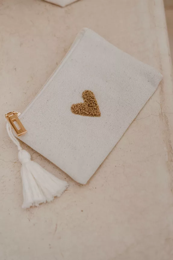 Tout en douceur, le porte-monnaie en coton brodé d’un cœur “Love” est le compagnon parfait des petits et grands. Pratique et polyvalent, il accueille pièces, petits trésors ou souvenirs précieux, ajoutant une touche de poésie et de style à chaque journée. Sa fabrication soignée et son petit pompon amovible en font un accessoire à la fois fonctionnel et plein de charme, prêt à vous suivre partout.