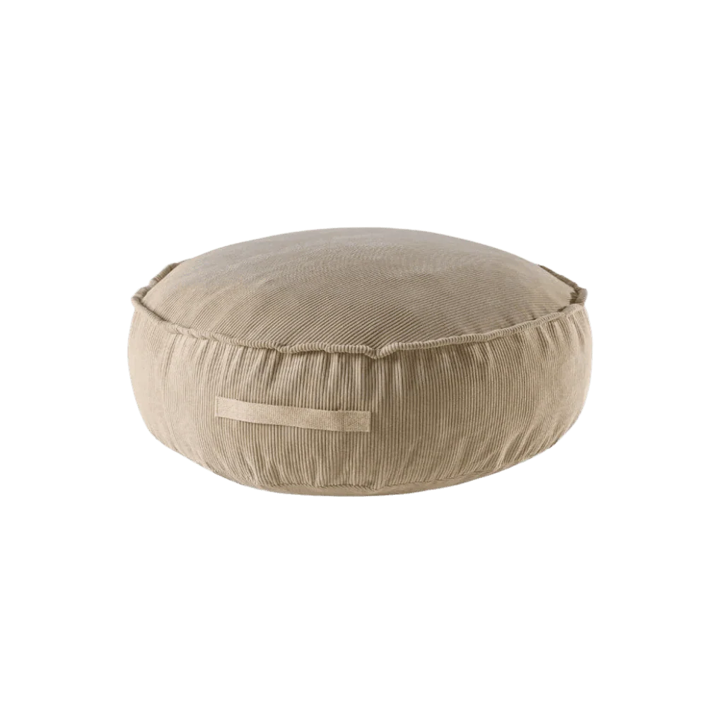 Avec son diamètre de 65 cm et sa hauteur de 20 cm, il est idéal pour lire, jouer ou se reposer. Le rembourrage en mousse, protégé dans une housse intérieure, garantit un confort optimal. Facile à entretenir : la housse extérieure se retire et se lave à la main en toute simplicité.