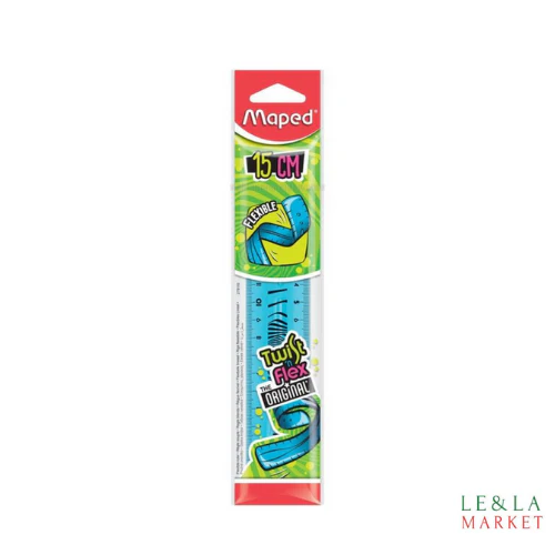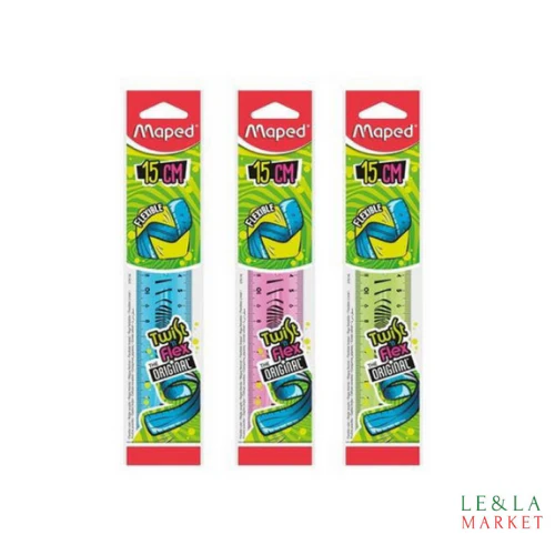 Maped règle plate 15cm Twist’n’flex, différents coloris(rose, vert et blue). Existe en différents coloris, livrés de manière aléatoire.