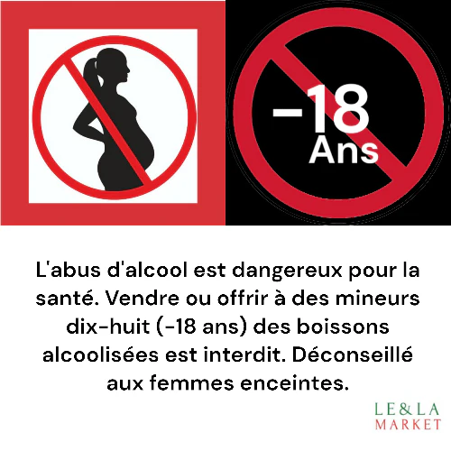 L’abus d’alcool est dangereux pour la santé. Vendre ou offrir à des mineurs dix-huit (-18 ans) des boissons alcoolisées est interdit. Déconseillé aux femmes enceintes.