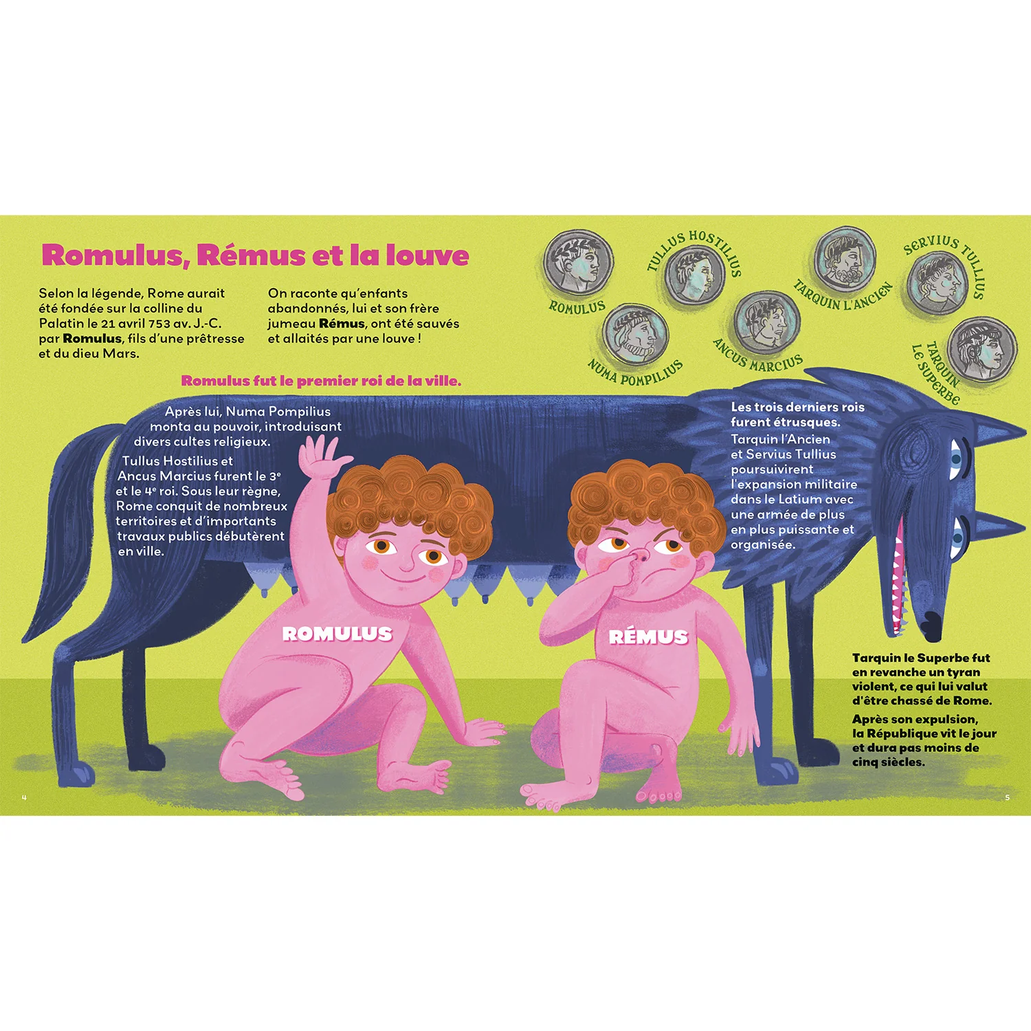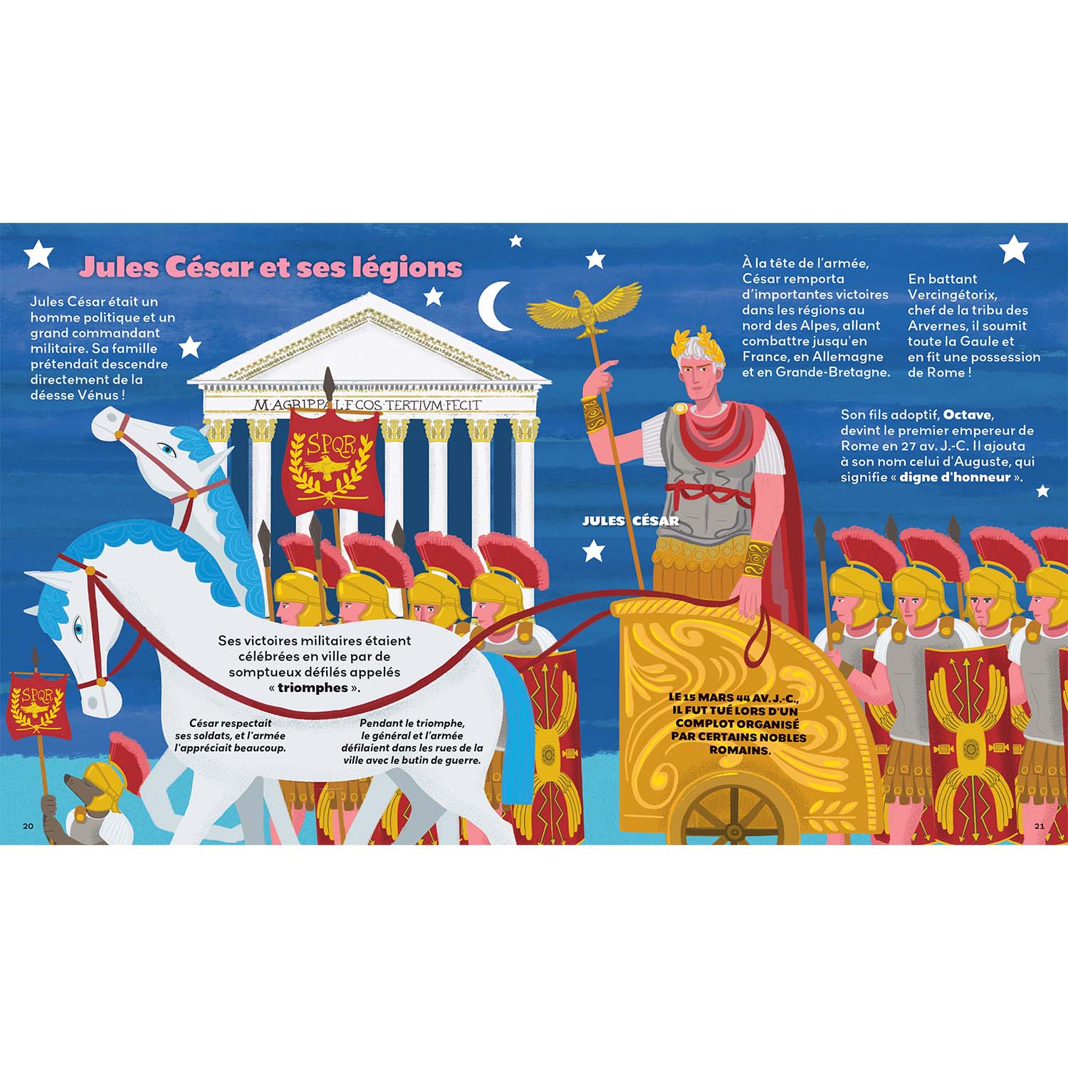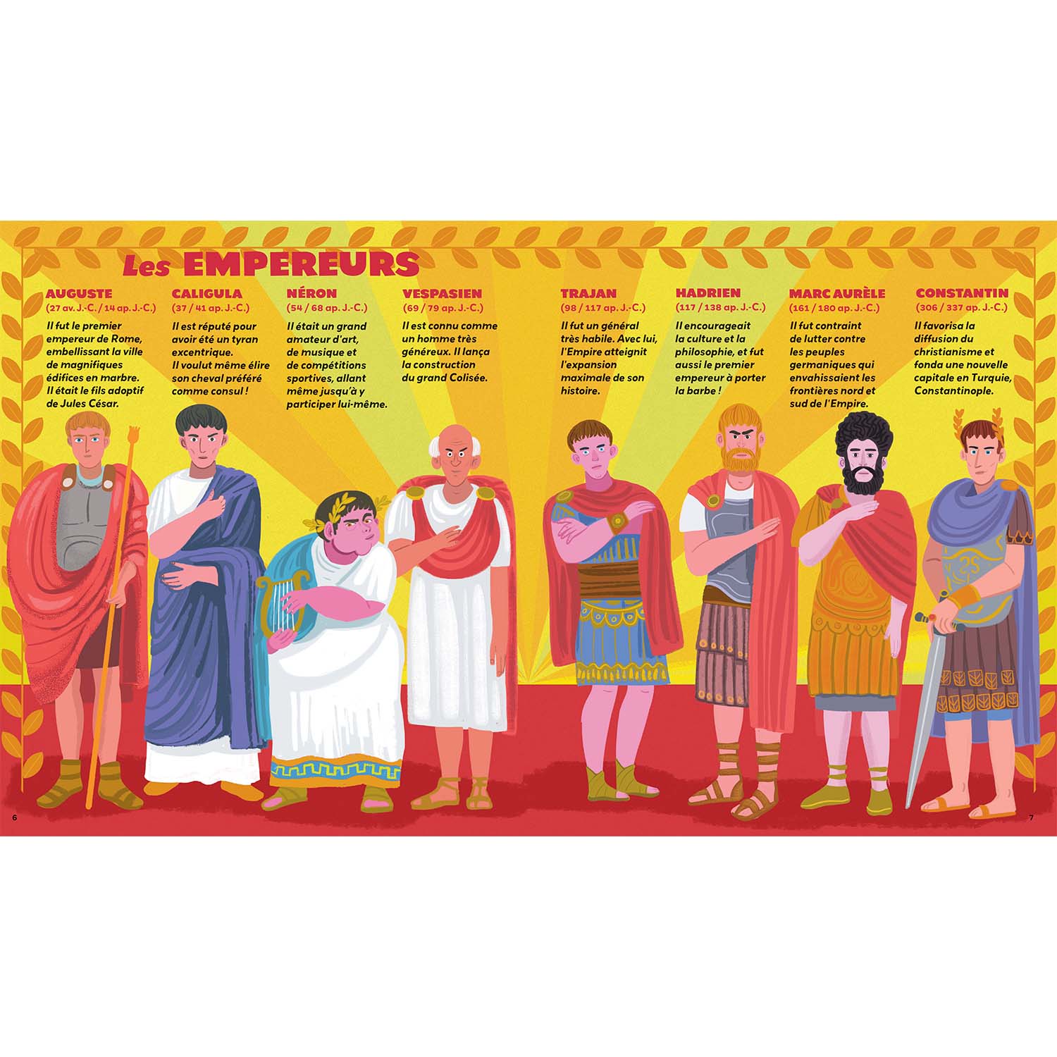 - Un voyage à la découverte de la Rome antique à travers des illustrations colorées et détaillées et des textes adaptés à un jeune public