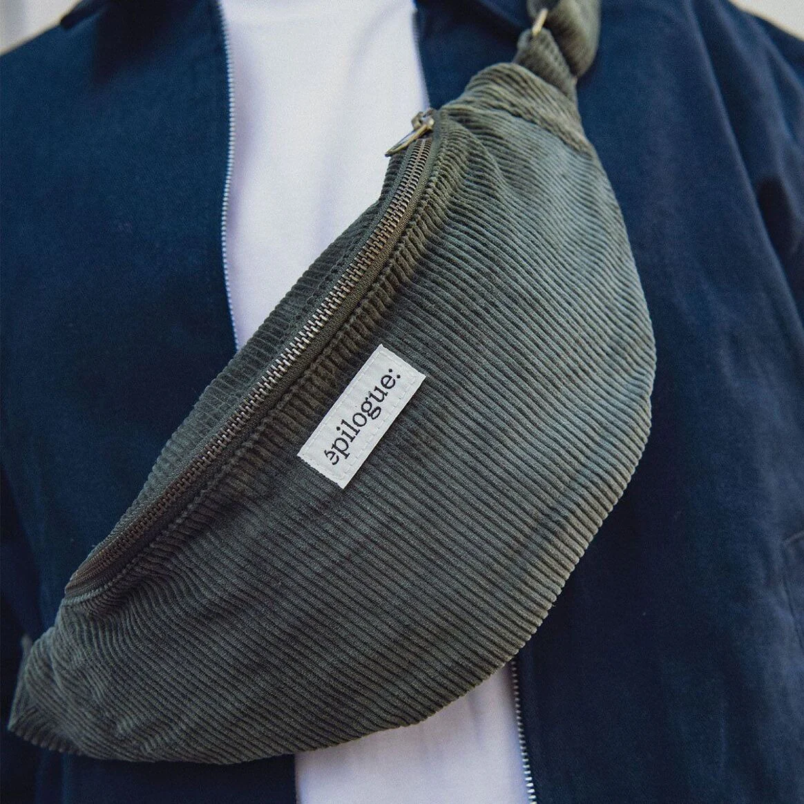 Un sac banane en velours côtelé unisexe avec trois poches de rangement pour organiser ses indispensables du quotidien.