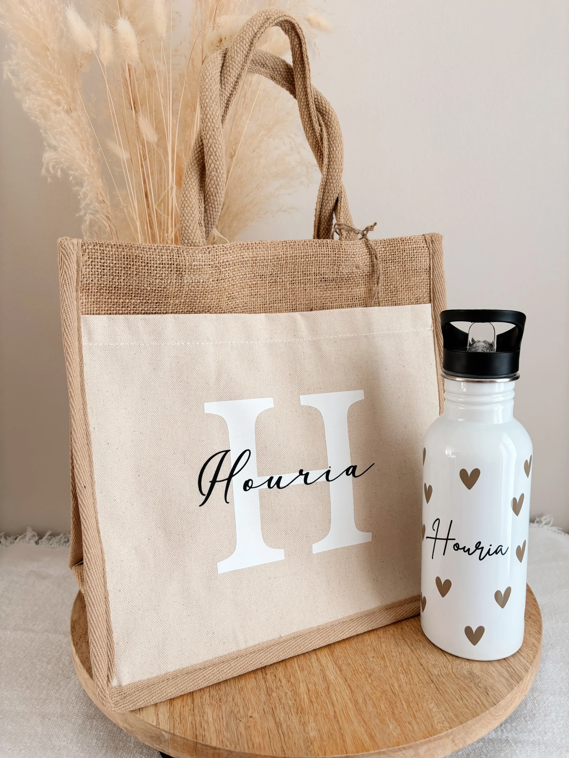 Découvrez nos sacs shopping éco-responsables en toile de jute amidonnée, disponibles en deux formats : petit et grand modèle. Ils sont dotés d’une poche frontale en coton canvas, idéale pour l’impression de votre prénom, message ou design. Solides, durables et esthétiques, ces sacs sont parfaits pour les courses, la plage.