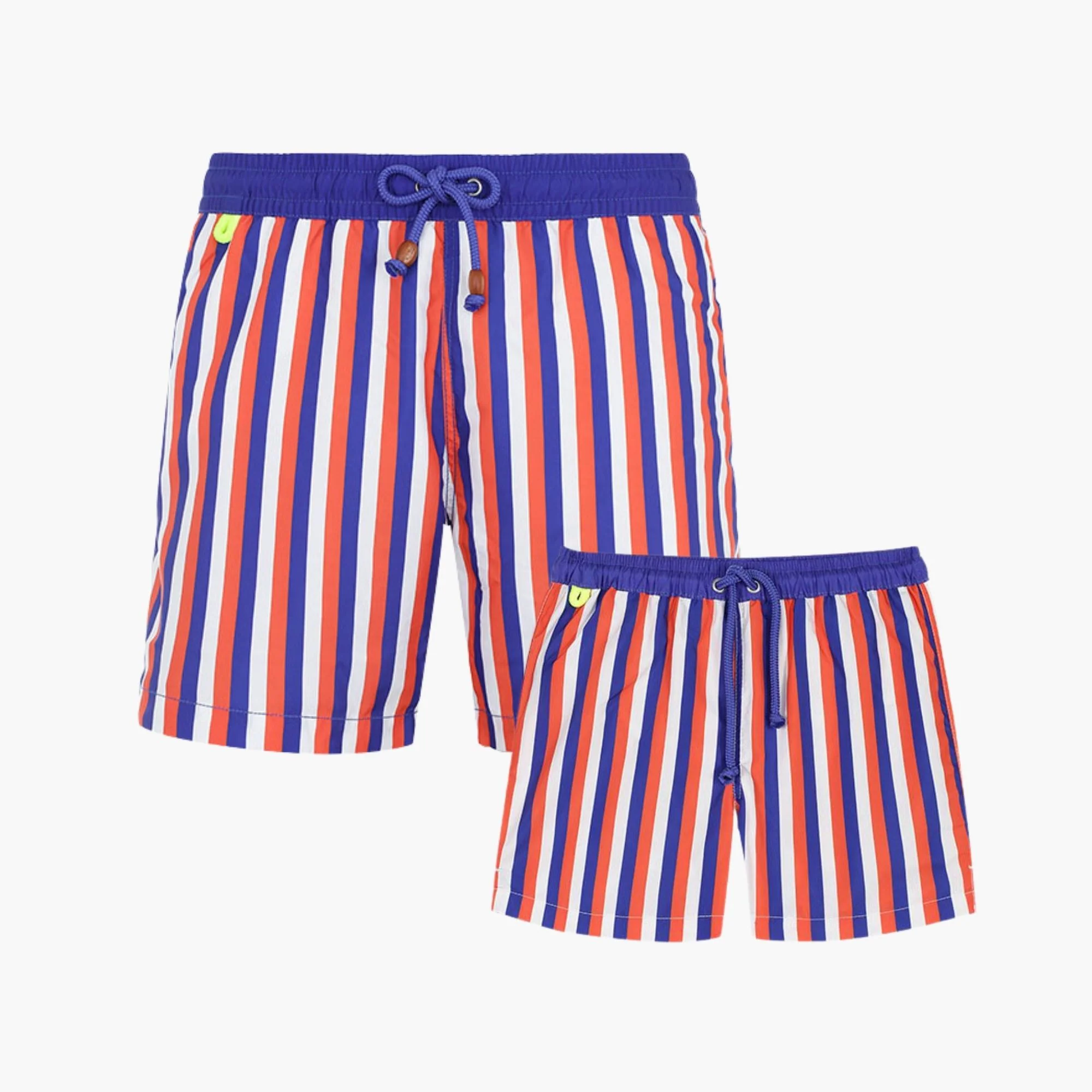 Parce qu’on n’a pas trouvé plus fier qu’un Papa qui forme le duo parfait avec sa fille chérie. Chez les petits garçons, l’illusion est encore plus belle : la coupe se décline sur le short de bain version « mini » aussi technique que confortable.
