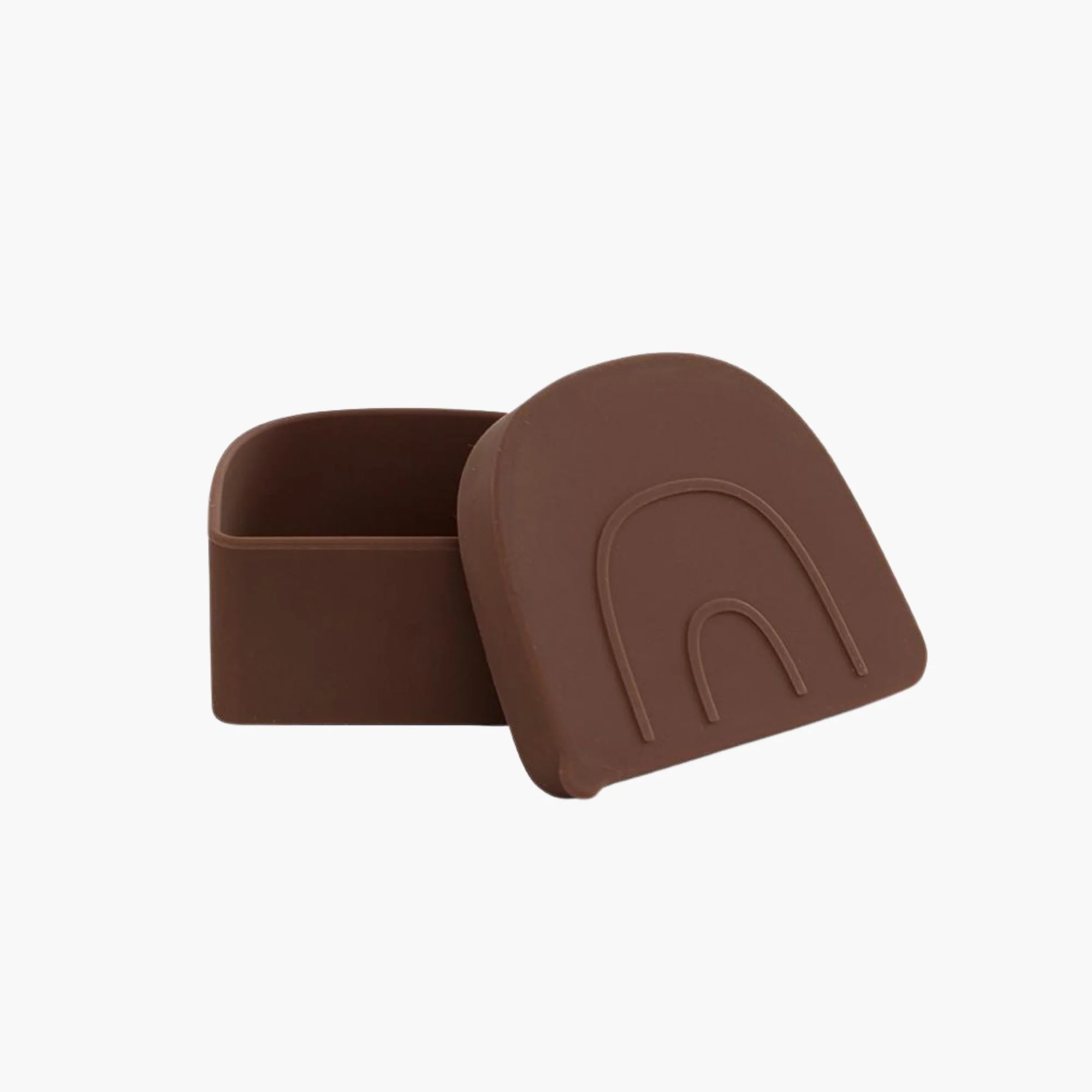 Petite boîte à collation arc-en-ciel avec couvercle. 100% silicone. 5 x 11,5 x 19,7cm. Convient au lave vaisselle et au micro-ondes. Oyoy