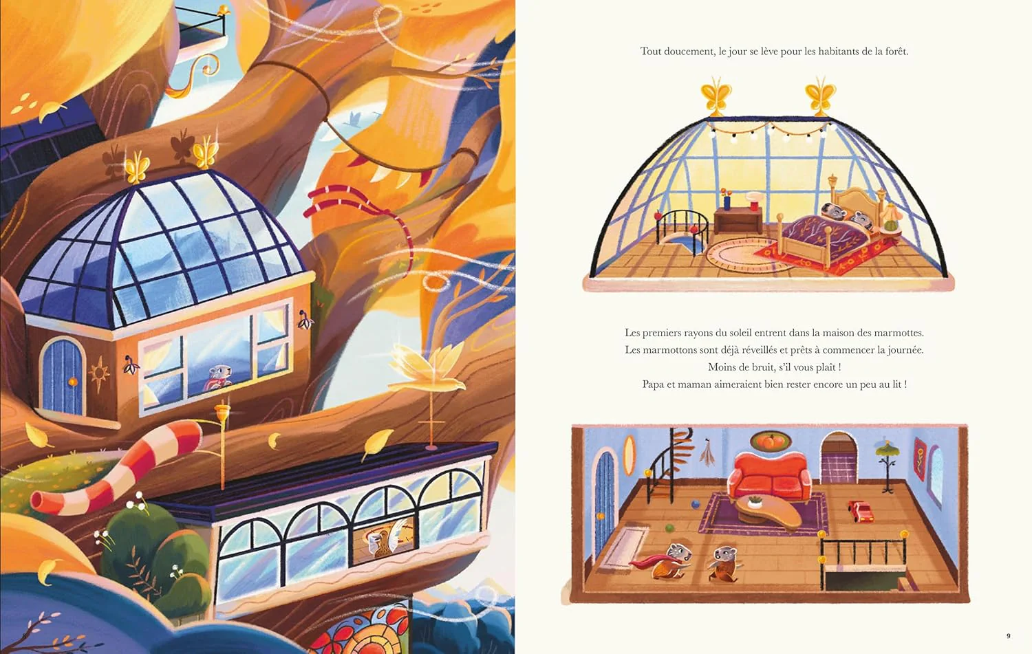 Le matin se lève sur la forêt. De la famille Marmotte à la famille Loir, découvrez la vie insoupçonnée qui s’agite au coeur du grand chêne.