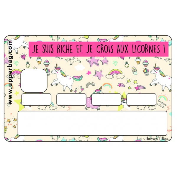 Sticker de Carte Bleue « Je Suis Riche et Je Crois Aux Licornes ! »