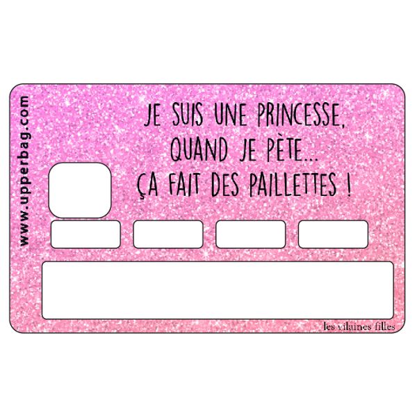 - Sticker de carte bleue « je suis une princesse, quand je pète ça fait des paillettes »