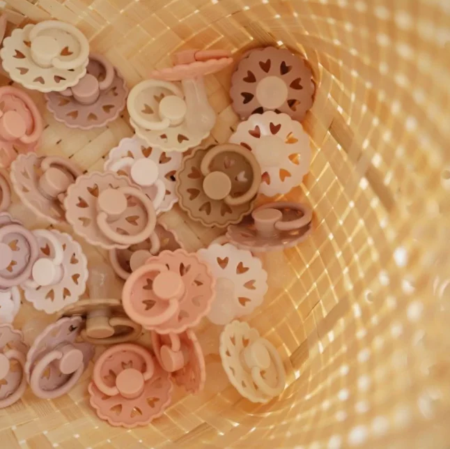À l’intérieur du bouclier de la sucette, les trous d’aération révèlent huit petits cœurs qui imitent l’œuvre d’art gravée d’Andersen et symbolisent le langage universel de l’amour.