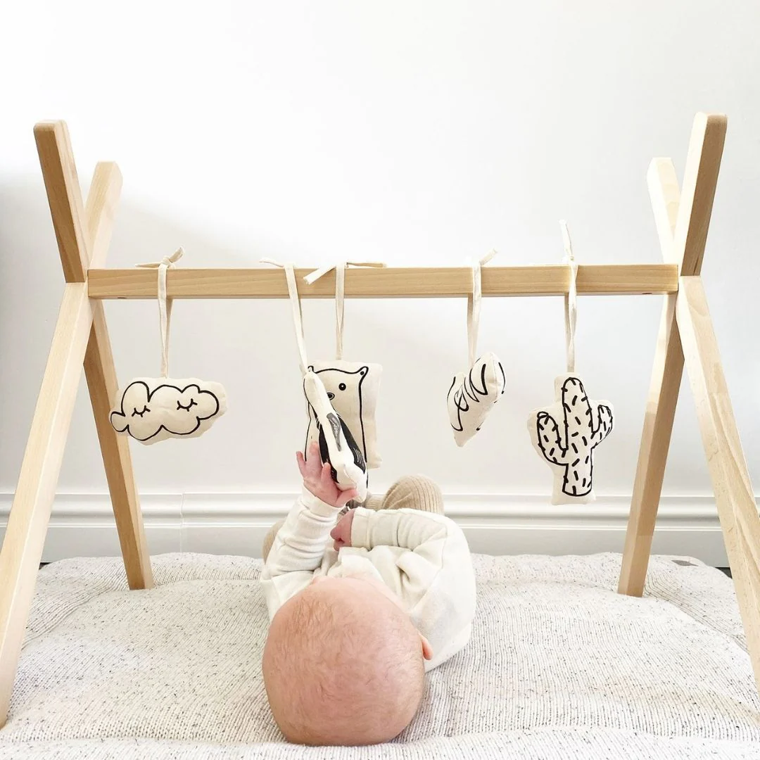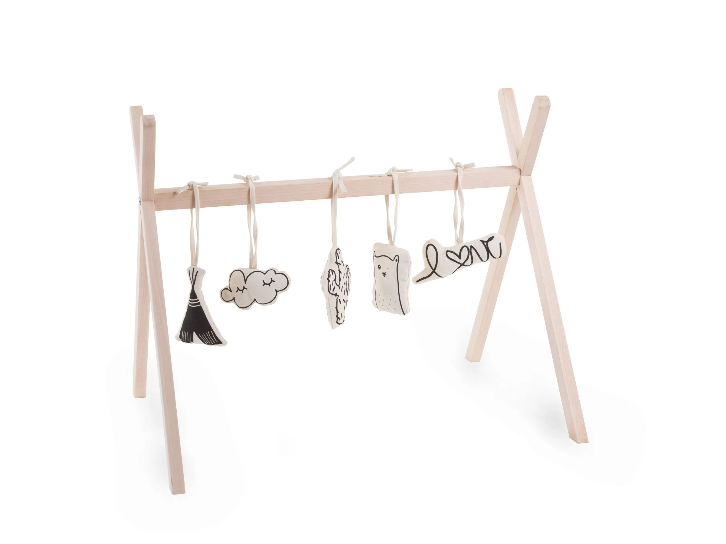 Un arceau en bois naturel robuste pour divertir le bébé. Sur le support, vous pouvez accrocher différents jouets. Les jouets tipi playgym sont disponibles séparément. L’arceau se placera parfaitement dans un parc ou sur un tapis d’éveil. 100% Hêtre. Childhome.