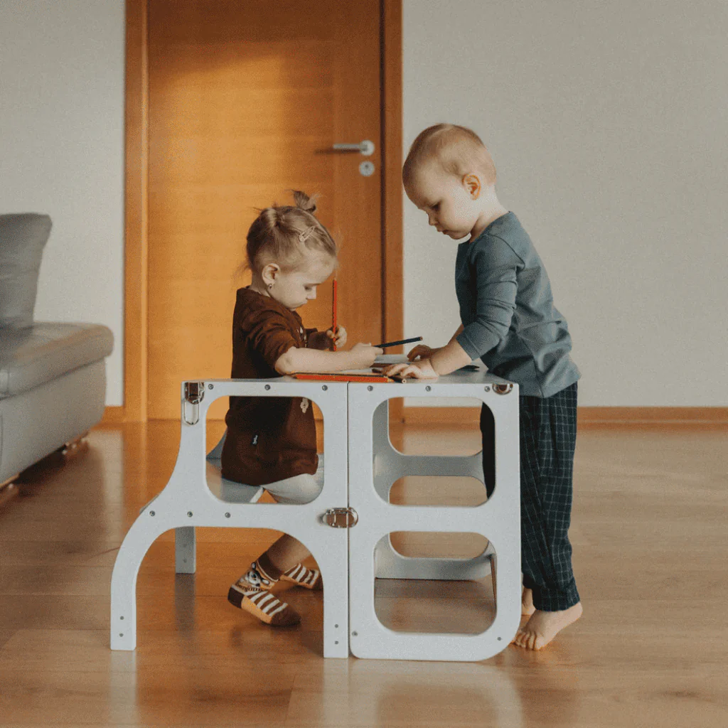 ✨ Offrez à votre enfant l’opportunité d’explorer le monde à sa hauteur avec la tour d’apprentissage – table STEP’n’SIT® ! 🧸 Ingéniosamente conçue en bois naturel, elle se transforme en un clin d’œil en table avec chaise pour dessiner, goûter ou jouer. Inspirée de la pédagogie Montessori, elle soutient l’autonomie et la curiosité dès le plus jeune âge. 🎈