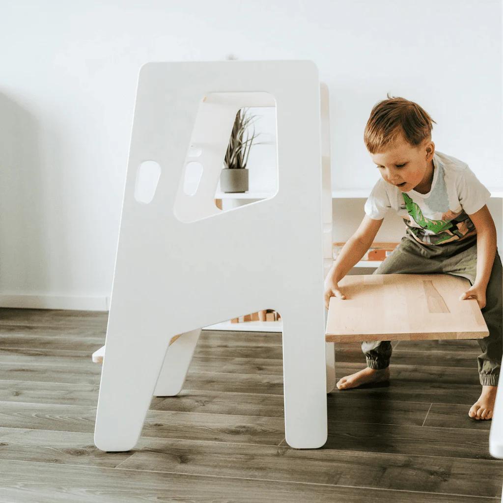 Permettez à votre enfant de vous rejoindre en toute sécurité à hauteur de plan de travail pour cuisiner, se laver les mains ou participer aux activités du quotidien.