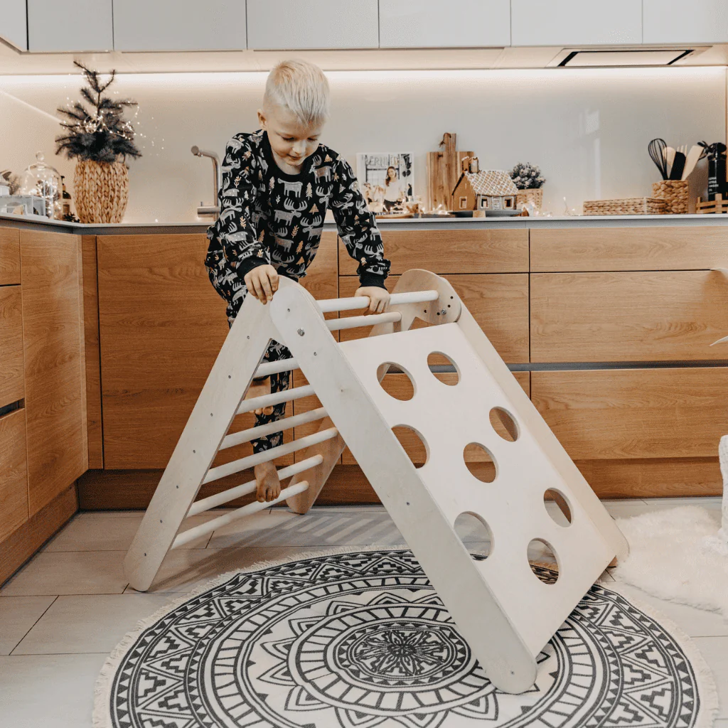 Conçu pour les tout-petits actifs, ce triangle d’escalade compact et réglable stimule la motricité globale et la confiance à travers le jeu libre.