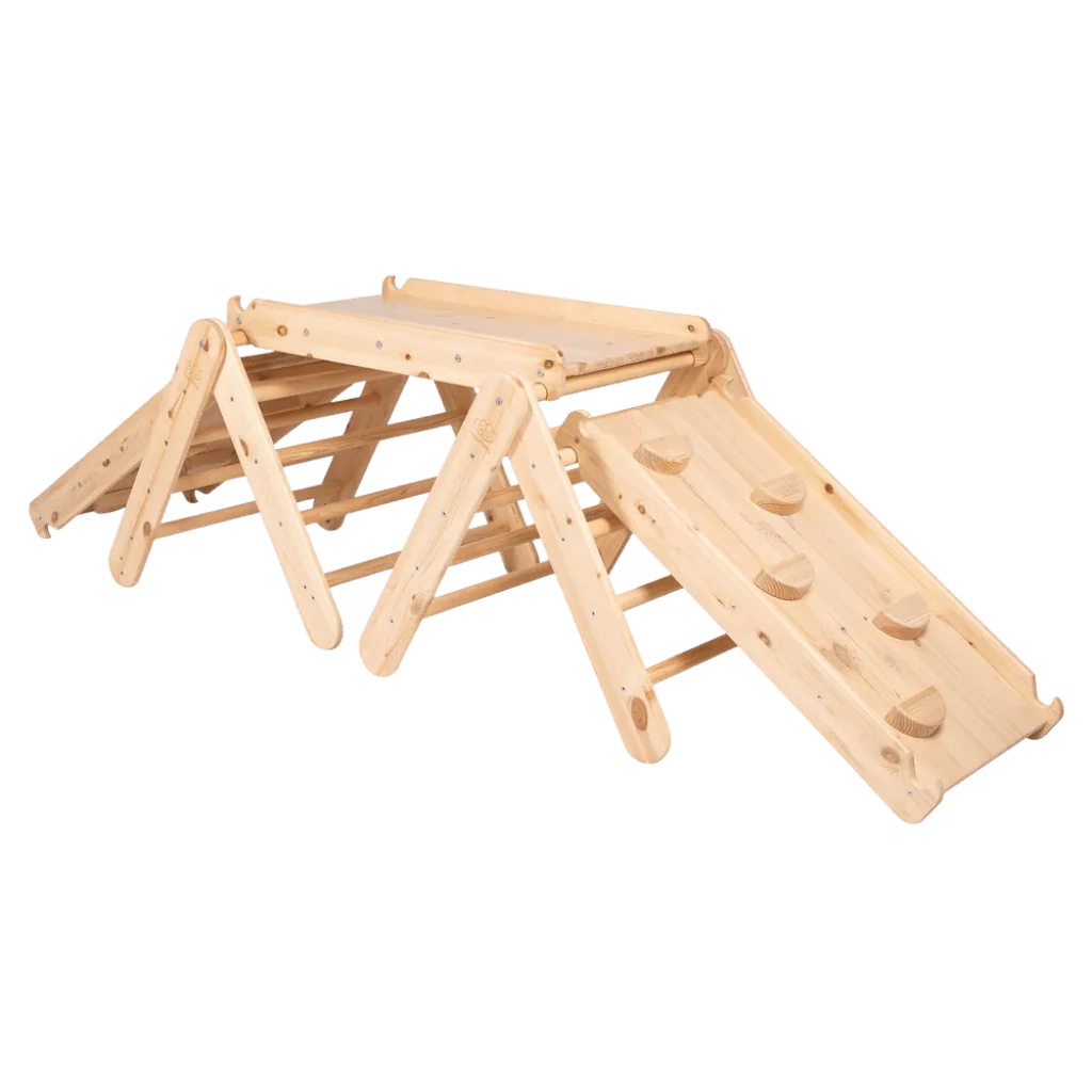 Triangle d’Escalade Pikler avec Toboggan et Structure d’Escalade – Bois Naturel