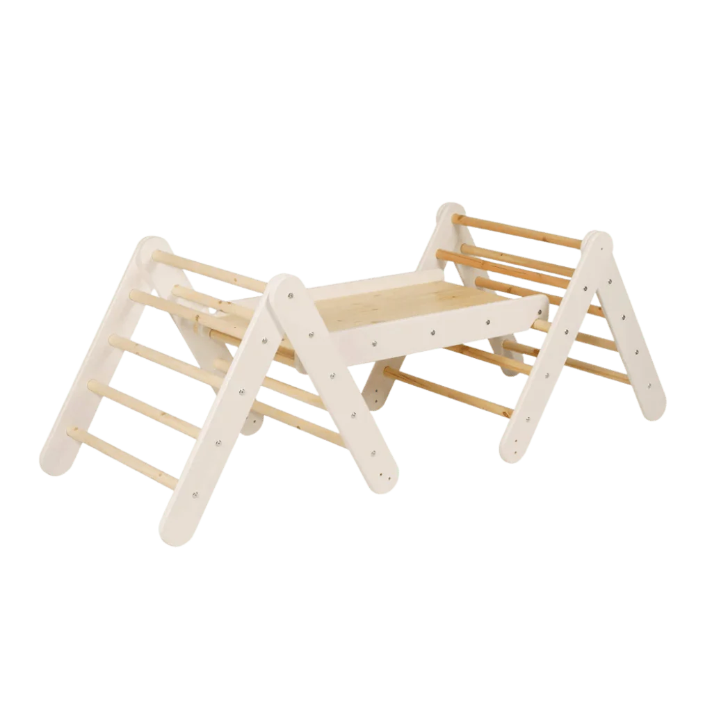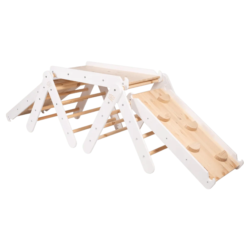 Triangle d’Escalade Pikler avec Toboggan et Structure d’Escalade – White